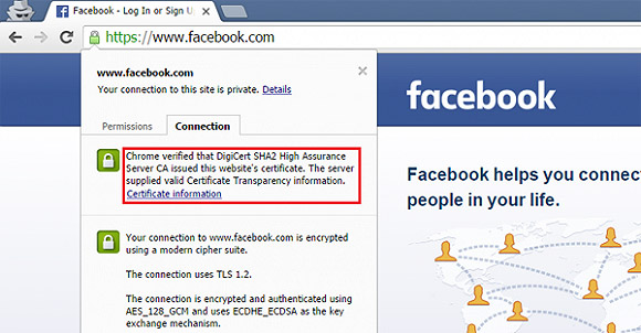 注:加入證書透明度項(xiàng)目的SSL證書將獲得瀏覽器額外的信息佐證,可查看Certificate information(透明度信息)